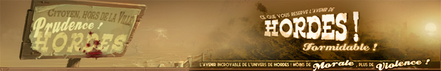 Dans Hordes vous incarnez un être humain en bonne santé, et lors de la création de votre personnage vous serez "téléporté" au hasard dans une des villes du jeu (sauf si vous optez pour le compte héros payant). Pour la grande majorité vous serez donc seul, dans une petite ville au milieu du désert. La grande aventure de Hordes, c'est que ce désert est peuplé de hordes de zombies, qui n'en veulent bien sûr qu'à vous, les gentils humains.