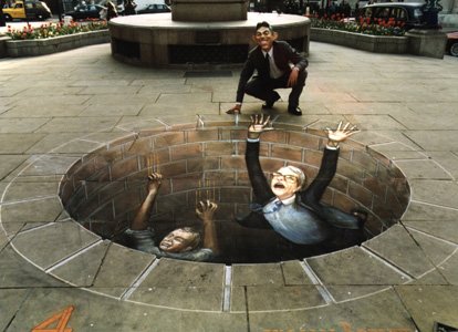 Un petit post pour vous faire part de photos découvertes par Coralie assez impressionnantes !! Le gars dessine à la craie sur les trottoirs des dessins en tenant compte des perspectives pour donner un rendu 3D... C'est assez allucinant au niveau du résultat ! Je vous laisse découvrir...