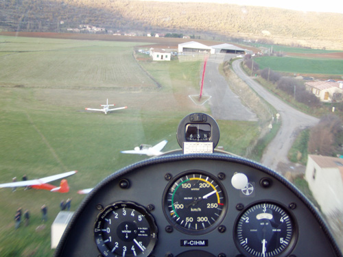 Alors pour les photos, je précise qu'elles sont faites en passagers, sauf la dernière. L'Alliance est un planeur bi-place. Il est totalement suicidaire de prendre des photos pendant la treuillée, un passage ou l'atterro... Ces phases de vol demande pas mal de concentration et surtout les deux mains libres... ;-) La dernière est faite en vol en pallier donc rien de bien sorcier si ce n'est qu'il faut surveiller les autres planeurs (juste avant de prendre la photo...) ;o) Dernière chose : pour ceux qui sont interressés, c'est une passion qui revient moins cher qu'il n'y parait. Plus de renseignements dans un prochain article...liberte66 le 03 Janvier 2007 à 0:08