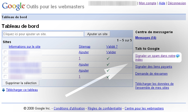 Qu'il s'agisse de spam, plagiat, manipulation de données ... les sites qui tentent de tricher par une méthode quelconque doivent être signalés à Google. Pour ce faire rendez-vous dans l'interface des outils pour les webmaster google : www.google.com/webmasters/tools
