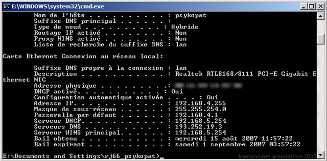 D'ailleurs, on a vu que l'ip en 0 peu être utilisé donc pourquoi pas la 255 vu que avec ce masque là, le réseau et le broadcast ne pose pas de problème donc... Enfin, si c'est un serveur DHCP bien config et qu'il t'ai attribué l'ip en 255 et que ton PC l'ai accepté alors il n'y avait pas de prob... D'où ma question: Erreur ou exception qui confirme la règle?farwarx le 15 Août 2007 à 18:28