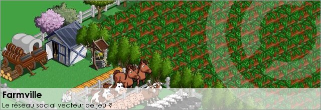 oui, farmville immense succés depuis des mois et des mois ; et je dois le reconnaitre un coup de maitre de la part de Zinga l'editeur pour avoir senti un tel filon avec ses 73 331 403 joueurs; donc dire que c'est un jeu bete ; sans interet alors que toi meme y joue regulierement ; je ne suis pas trop d'accord .Depuis peu j'ai bien compris la nature des informations circulant sur internet et voici ce que je retiens ; ils y a ceux qui proposent du contenu ; Zynga ; google ; le site du zero; south park tv ; et tant d'autre...... et puis il y a ceux qui en parlent sur leurs blogs, forum mais n'apportent rien de nouveau ; c'est a dire en parlent ,critiquent ,conseil(c'est un grand mot) et finalement restent dependant du veritable contenu dont ils ne sont pas 'auteur' c'est leur raison d'etre sur internet. un peu comme ce post et comme les centaines de milliers d'autres qu'il y a eux sur ce jeu farmville.