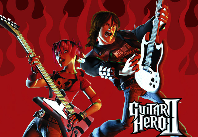 Outre cette redécouverte du monde de Stepmania (3h non stop en plein milieu de la nuit ^^), j'ai également fait la rencontre d'un OJNI (objet jouable non identifié), qu'est le jeu Guitar Hero.