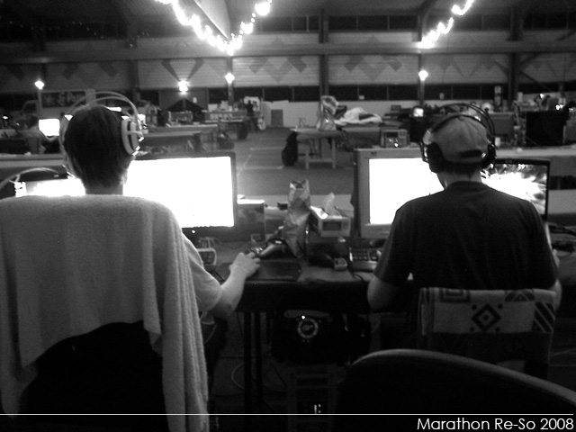 Je prend enfin quelques minutes pour partager quelques clichés de la Marathon Re-So 2008. Tout d'abord une photo du petit déjeuner au réveil (situé entre 9h et 13h, approximativement).