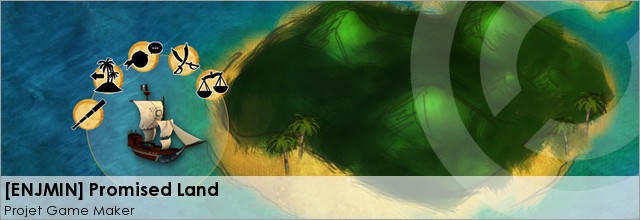En première année de Master, les étudiants de l'ENJMIN travaillent en équipes sur les "projets Game-Maker", une première expérience avant les mini-projets d'Avril à Juin qui eux verront naître des productions beaucoup plus abouties. J'ai déjà brièvement évoqué les conditions d'élaboration du jeu dans un précédent billet, je vais enfin pouvoir vous présenter notre jeu : Promised Land.