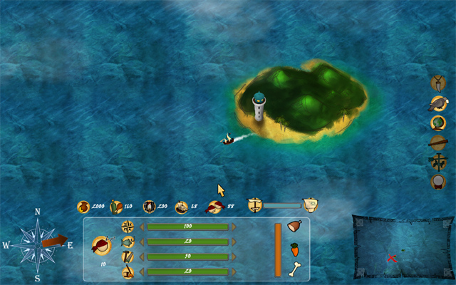 Après une petite demi-heure de test, je me permet de faire une critique un peu dure mais constructive ;) Je commence avec les bugs que j'ai rencontré : bug de résolution, pas d'options d'affichage ? obligé d'aller dans le fichier .ini ; bug d'affichage de la carte, j'avais que la moitiée ; bug musique et ambiance, plus de son ! J'imagine que c'était pas évident à régler avec Game Maker (sur Fusion on en a chié). Pour ce qui est du graphisme général, je l'ai trouvé dégueu, sans parler de la typo immonde et tout juste lisible, en revanche le bateau est cool et les pictos fonctionnent. Mais j'encourage vivement la demoiselle, l'image ça ne s'improvise pas, je sais combien c'est un boulot monstre. Je passe au son...mes pauvres oreilles, musique complètement périmée, j'avais pas entendu ça depuis Windows 95, bon, je suis pas un musicos, le seul conseil que je puisse donner : écouter de l'electro actuelle, bordel !Au sujet du jeu en soit, deux fois trop de texte (avec cette typo c'est rude pour le joueur) je pense que le tuto serait mieux passé avec un peu de répartition, ainsi on découvrirait le gameplay sans être obligé de s'enquiller des pavés. Quoiqu'il en soit, je me suis fait violence et le gameplay était prometteur ! L'ergonomie est bonne, prise en main sans accroc, gestion du bouzing bien pensée et plaisante. Le dommage c'est que j'ai surement zappé un truc (bug carte) mis à part le premier village je ne suis tombé que sur des gros cailloux de ravitaillement. Finalement je me prend un gros brouillard et vlan, des pavés de texte inutiles pour tomber sur un phare même pas planqué...et depuis quand l'océan est limité ? J'aurais trouvé plus sympa de faire reboucler la map.