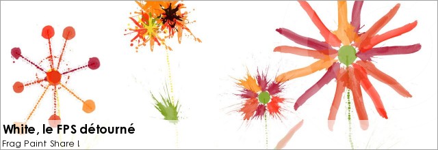 WHITE est un détournement du FPS (First Person Shooter) dans lequel vous êtes amené à tirer sur des petits personnages trognons (les calvis) qui ont la faculté de projeter de la peinture lors de leur explosion. Un arsenal varié et différentes techniques d'approche vous permettront alors de composer une toile de maître en trucidant la horde de bipèdes qui peuple le territoire. La gamme de couleur disponible est modifiable sur le menu principal et toutes vos créations sont exportables en jpg afin de les conserver ou même mieux, les partager avec vos amis.